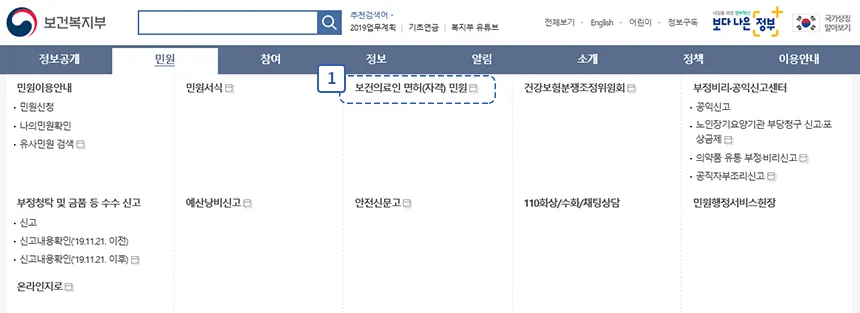 보건복지부 면허(자격) 민원 시스템