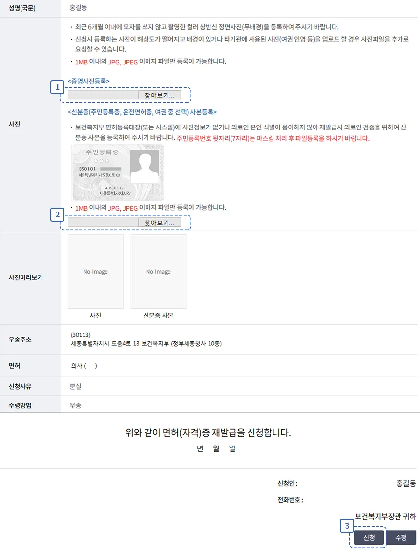 보건복지부 국가자격 재교부