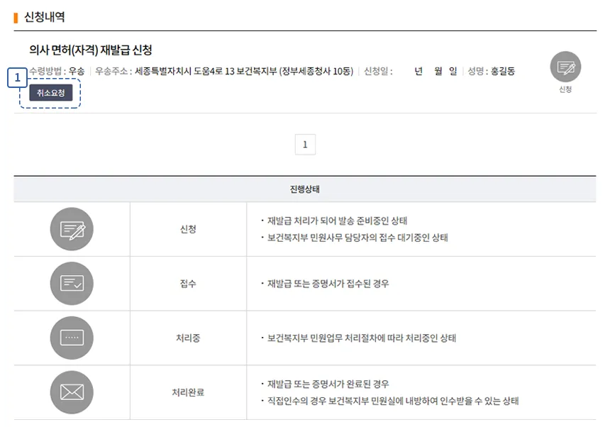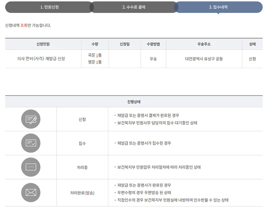면허·자격 관리 시스템 로그인 후 마이페이지에서 처리 상태를 확인할 수 있습니다.