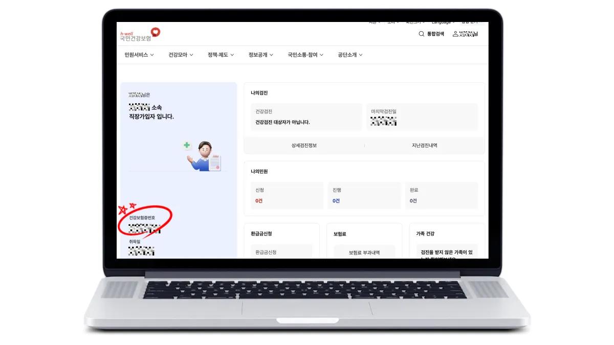 건강보험증 번호는 국민건강보험 홈페이지에서 본인 인증 후 조회할 수 있습니다.