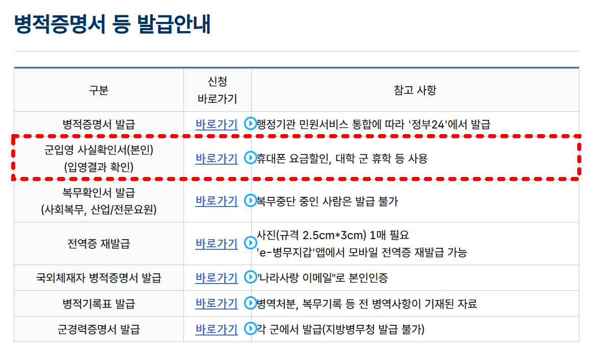 군입영사실확인서 발급 방법 (온라인 PDF 발급)