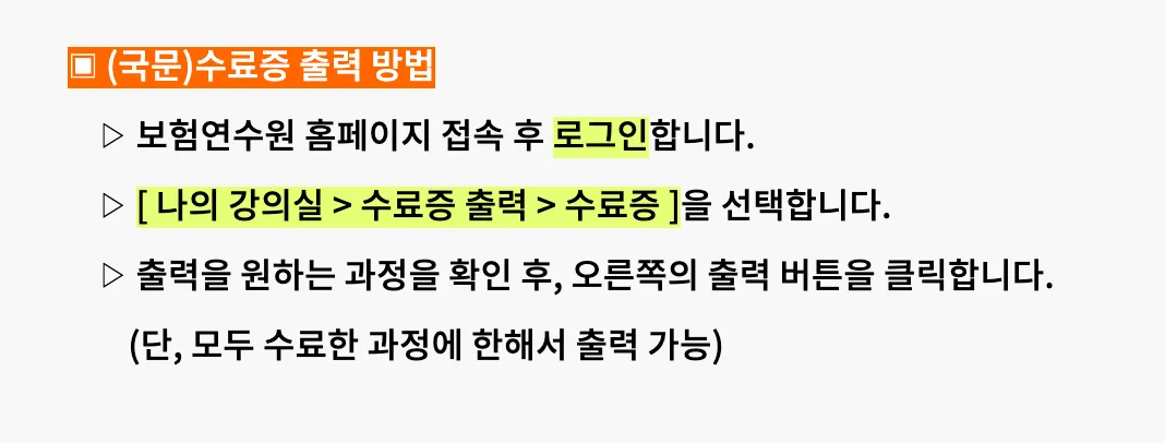 보험연수원-수료증-국문-신청-절차
