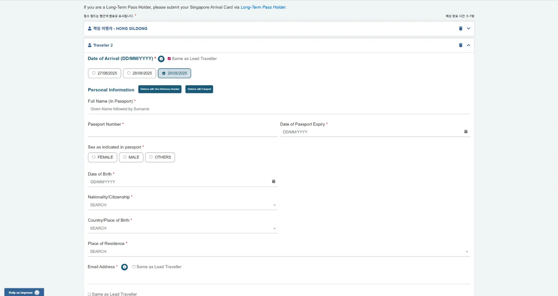 공식 ICA SGAC e-Service 또는 MyICA 앱에서 입국 예정 3일 이내에 개인·여행·건강 정보를 입력하면 완료됩니다. 정확하게 제출하여, 싱가포르 입국을 준비하시기 바랍니다.