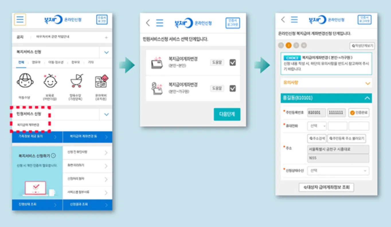 계좌변경을 위해서는 정부가 운영하는 복지포털 보건복지부 복지로 앱을 통해 한 번에 처리가 가능합니다.