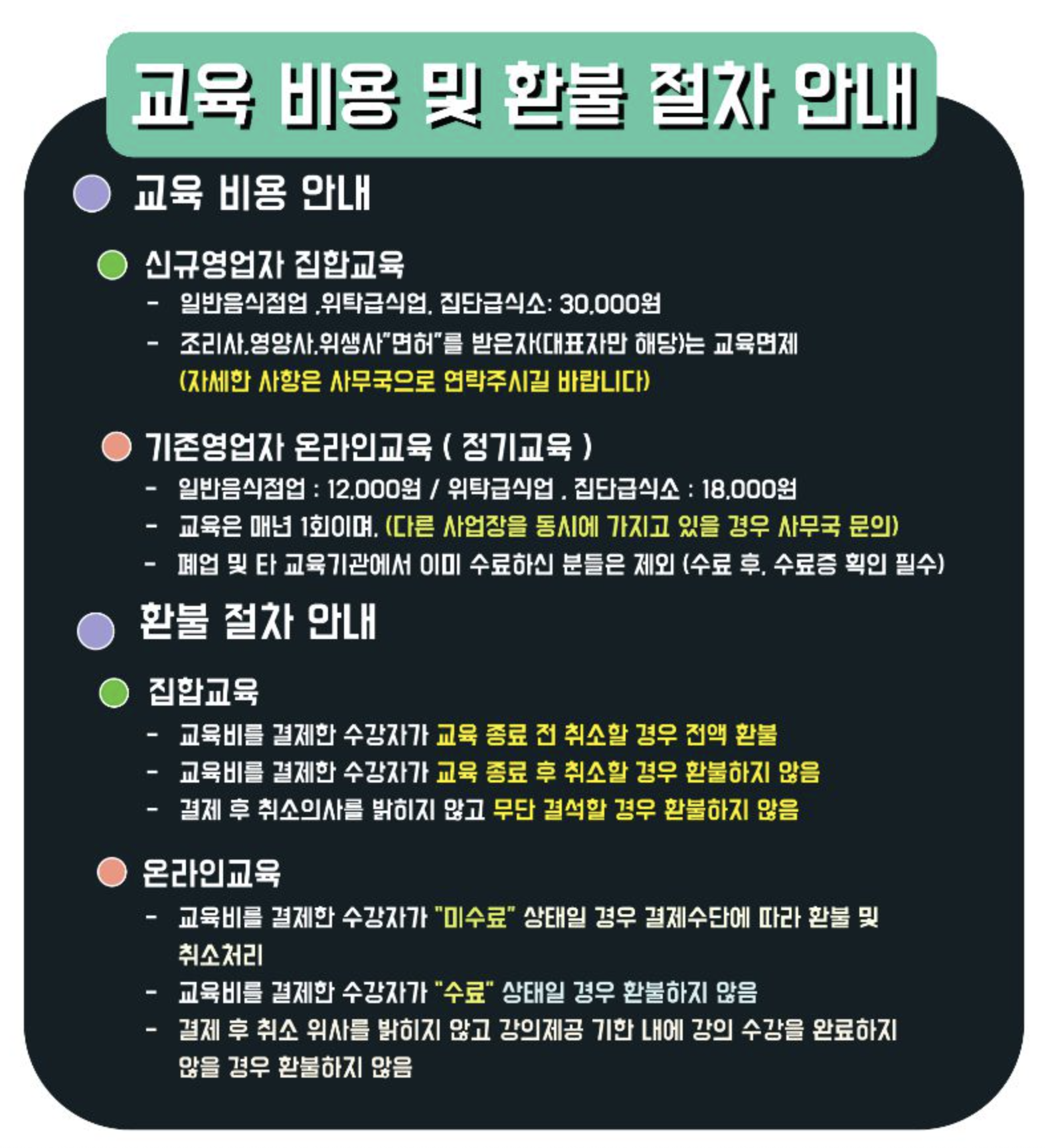 요식업 위생교육 신청 및 온라인 수강 비용 안내