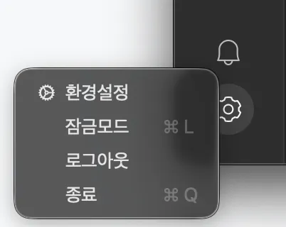 화면의 설정 아이콘(톱니바퀴)을 클릭해 설정 창을 엽니다.