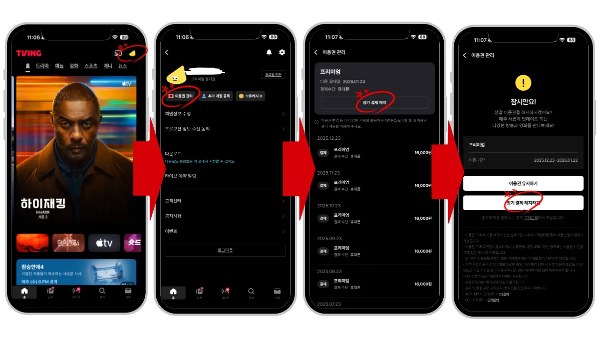아래 내용에서 티빙 해지 방법, 환불 기준, 인앱결제·제휴상품 주의사항까지 정확히 정리했습니다.