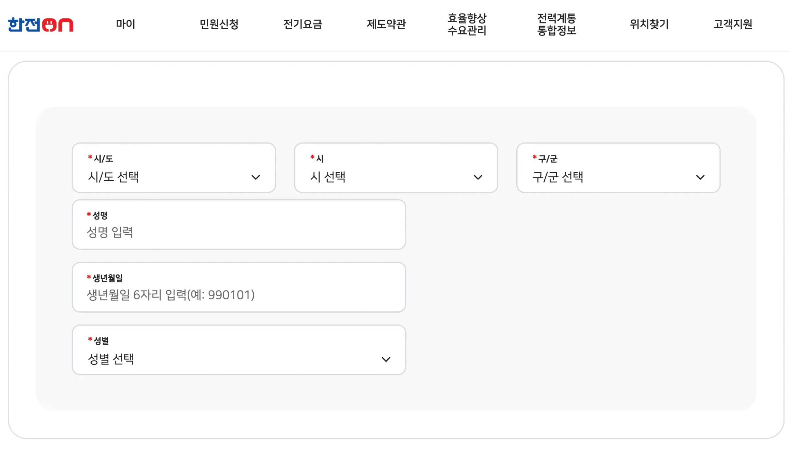 - 위 링크(한국전력 고객번호 조회 페이지) 접속