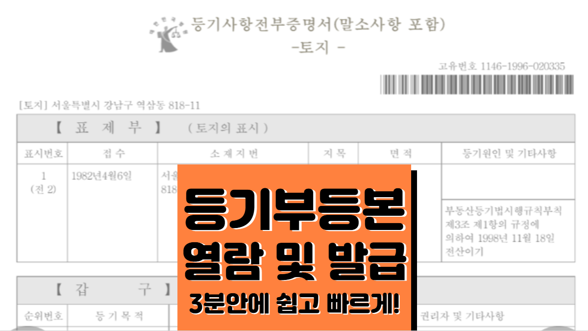 부동산 등기부등본은 부동산의 소유권, 저당권, 전세권 등 권리 관계를 명확히 파악할 수 있는 중요한 서류 입니다. 부동산 매매 거래나 임대차(전세 또는 월세) 계약을 진행하기 전에 등기부등본을 확인하는 것은 필수적입니다. 일반적으로 등기부등본은 대법원 인터넷등기소에서 열람 시 700원, 발급 시 1,000원의 수수료가 부과됩니다. 그러나 몇몇 온라인 플랫폼을 통해 무료로 열람할 수 있는 방법도 있습니다. 등기부등본 열람 무료 … 더 읽기
